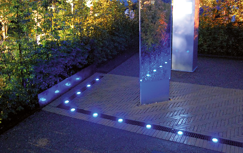 ACO Drain® Multiline V100 with illuminated iron grate.