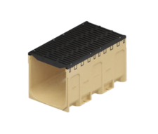 Linear drainage designed for special tasks – for heavy traffic areas in industrial plants, gas stations, and fuel depots. Made of polymer concrete with cast iron edges. Secured with a longitudinal sliding bar Powerlock® – a screwless grating mounting system. Load class D 400 or F 900.
